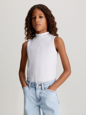 Ribbed Modal Turtleneck Tank Top in White Very well made.